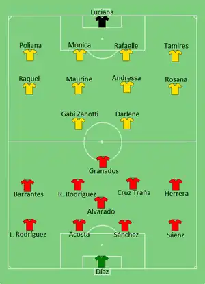 - 1 2 "Tactical Line-up – Costa Rica-Brazil" (PDF). FIFA. 17 June 2015. Archived from the original (PDF) on 18 June 2015. Retrieved 17 June 2015.