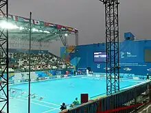 The temporary open arena for water polo with 3,500 was built close near Aquatics Palace, using its service and support systems.