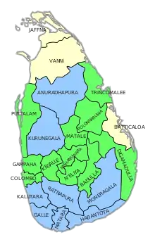 The Tamil National Alliance, the largest party representing the Sri Lankan Tamils, contested in the five electoral districts in the north and east and was aiming to win 20 seats.[101][102] The JVP, which had contested the two previous parliamentary elections in alliances, contested this election on its own.[103] Sarath Fonseka's Democratic Party contested in all but three electoral districts.[104]