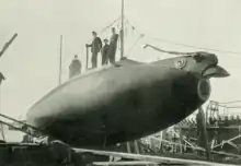 - ↑ Peter Krantz [@peterkz_swe] (July 27, 2015). "Verkar vara ubåten Сом/Catfish från 1905.Observera texten i fören" (Tweet) – via Twitter.