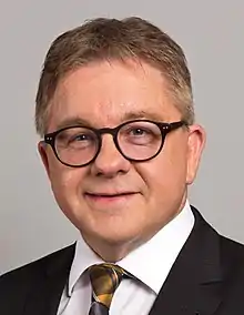 In May 2016, the Landtag confirmed Kretschmann's leadership in a secret ballot.[11] He won 82 votes leading a "green-black" coalition with a nominal majority of 89 Landestag members (Green 47, CDU 42). A similar "black-green" coalition headed by the CDU has governed in Hesse since the similarly indecisive 2013 elections, but this is the first time the Green Party is the lead coalition partner in a coalition with the CDU (previously, they led a coalition with the SPD). Kretschmann formed the Cabinet Kretschmann II as the state government.
