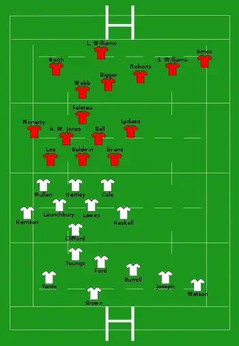 - Bench players Gareth Anscombe and Ross Moriarty was pulled out of the team moments before kick-off due to injury and replaced by Taulupe Faletau and Jamie Roberts.