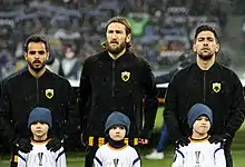 In the winter, AEK, in order to replace the injured Mantalos and Johansson, proceeded with the transfers of the international Iranian midfielder Masoud Shojaei and the Spanish Erik Morán, while Traustason, Patito Rodríguez and Vinícius departed, with the latter being replaced by Niklas Hult from Panathinaikos. Despite the small roster, the team continued in the same manner in a very competitive league, until the following events occurred. Their contenders for the league, PAOK and Olympiacos faced each other in Thessaloniki and before the start of the game, the coach of the red and whites, Óscar García was hit with a paper roll in the face, resulting in the departure of the squad of Olympiacos and their 0–3 victory on paper. This resulted in PAOK being punished with a 3-point deduction and a one-game home ban, which coincided against AEK.[1] PAOK filed an appeal and after the midnight before the crucial match, the decision came out returning the points, as well as lifting their home ban,[2] with the team of Thessaloniki "magically" managing in a few hours to print and sell all the tickets for the match.[3] So, under these cirmconstances, AEK went to the Toumba Stadium to compete and in a game, where despite the hostile referee, they managed to limit their opponent and everything was going smoothly, until the 90th minute, when at the only big chance of PAOK in the match, Fernando Varela scored with his teammate, Maurício got in the course of the ball with a projection in the air, from an obvious offside position. The referee Kominis initially counted the goal, but after protests from the players of AEK to the assistant, Pontikis and after consultation between the referees, they decided to cancel the goal. This resulted in the major shareholder of PAOK, Ivan Savvidis storming in the pitch with bodyguards to take the team and leave. When the captain of the black and whites, Vieirinha signaled him not to do this, he attacked Kominis. A moment later, he took off his jacket and a revolver was revealed in his belt. Then Kominis decided to stop the match and sent the teams to the locker rooms. After consultation, Kominis returned to the pitch with the players of PAOK to continue the match with the score at 1–0, but the yellow-blacks in the image of the gun refused to come out. The match was abandoned with the score 1–0 in favor of PAOK and the case was transferred to courts, where AEK was vindicated and were awarded the match with 0–3[4] and with the Thessaloniki team being punished with a 3-point deduction from this year's championship, 3 from the next season's championship, a 3-game home ban and the punishment of Ivan Savvidis and Ľuboš Micheľ.[5] With this decision, AEK's task of claiming the championship became easier and eventually came true in the home match against Levadiakos, where they managed to mathematically secure the title winning by 2–0, in celebratory atmosphere in the packed Olympic Stadium. After winning the last game at Rizoupoli Stadium against Apollon Smyrnis, AEK were crowned champions and held a title party in Nea Filadelfeia with their fans, in front of their under construction stadium.[6]