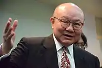 On 12 January 2017, Carrie Lam resigned from her Chief Secretary post (having at some point previously renounced her British citizenship, which would have excluded her from running) and announced her plan to run for Chief Executive if her resignation was approved.[47] In a closed-door meeting, she laid out an eight-point "achievable new vision" for Hong Kong and told participants that God had called on her to run. On 16 January, the two Secretaries' resignations were simultaneously approved by the central government. Some pro-Beijing politicians saw this as a sign that Lam was the central government's favoured candidate, as Tsang had resigned a full month before Lam.[48] Lam officially declared her candidacy on the same day, promising good governance with greater transparency and "new blood" in her cabinet, at a press conference in which she was joined by Executive Councillor Bernard Chan, director of her campaign office.[48] The chairman's council of her campaign office included prominent figures, former Hong Kong Stock Exchange chairman Ronald Arculli among them.[49]