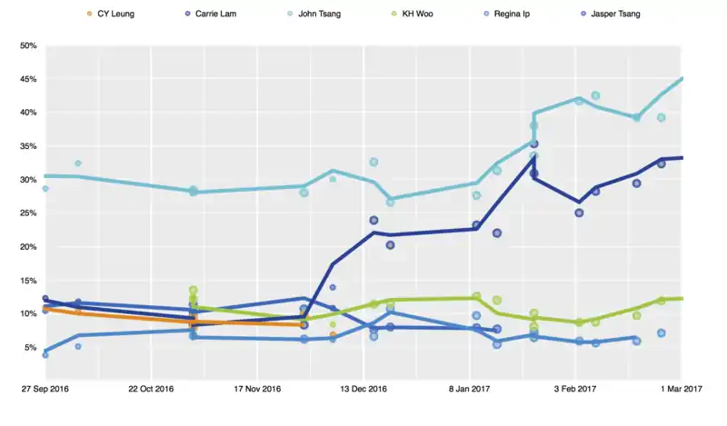109. "【2017行政長官選舉辯論】本台調查:逾八成受訪者認為曾俊華表現最好". now news. 15 March 2017.