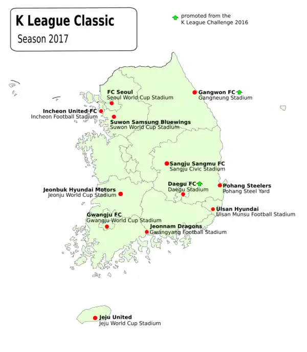 † Teams that played previous season in K League Challenge.