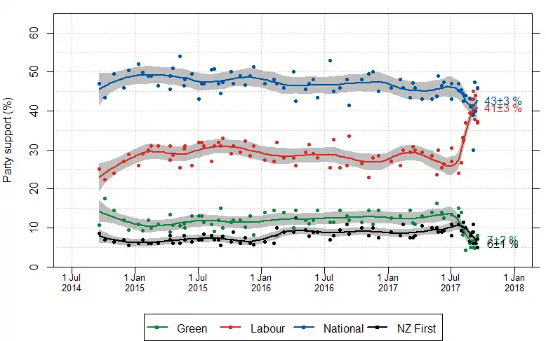 - ↑ "Newshub election poll: Either National, Labour could take power". Newshub.co.nz. 21 September 2017.