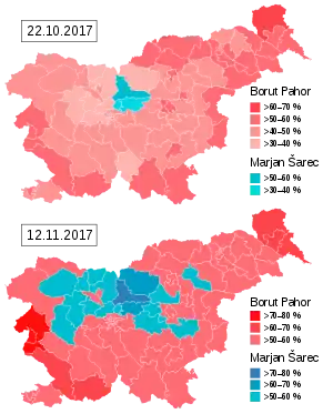 - 1 2 "Pahor zmagal v šestih volilnih enotah, Šarec v dveh | Grem Volit 2017". Rtvslo.si. Retrieved 12 November 2017.