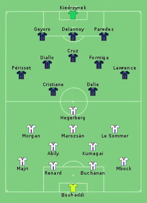 CM7France Aminata DialloYellow card 55'downward-facing red arrow 57'