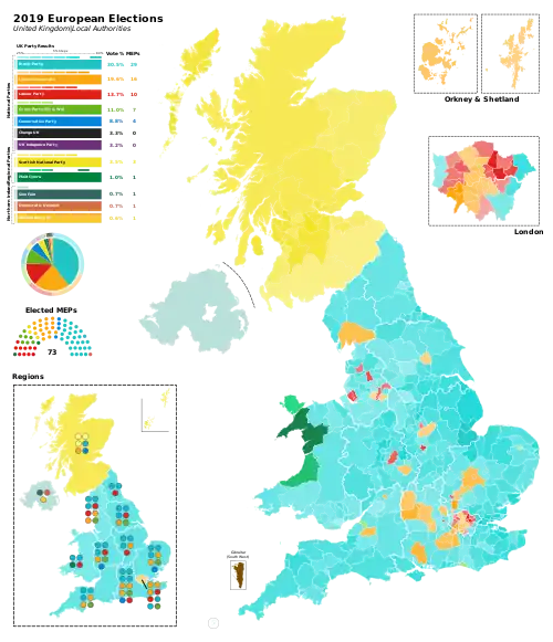 The election was the ninth time the United Kingdom had elected MEPs to the European Parliament (and the fourth for Gibraltar). Candidate nominations were submitted by 16:00 on 25 April 2019, and voter registration was completed on 7 May 2019.[5][6] The MEPs sat until 31 January 2020.