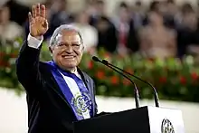 Salvador Sánchez Cerén, the then vice president of El Salvador, won the 2014 presidential election by a narrow margin. As a member of the left-wing Farabundo Martí National Liberation Front (FMLN), he defeated Norman Quijano, the then mayor of San Salvador of the right-wing Nationalist Republican Alliance, in that election's second round, winning 50.11 percent of the vote by a margin of 6,364 votes.[5] Sánchez Cerén was inaugurated on 1 June 2014, succeeding fellow FMLN President Mauricio Funes. He was the first former guerrilla fighter from the Salvadoran Civil War to be elected president.[6]