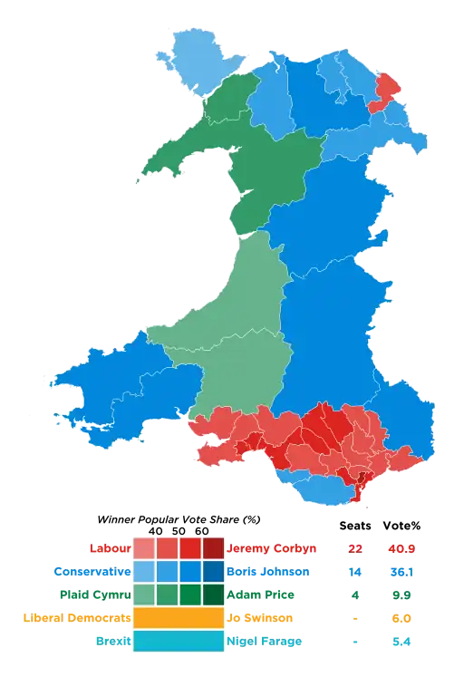 - ↑ "Results of the 2019 General Election in Wales". BBC News. Retrieved 14 December 2019.