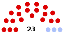 - 23 seats to be elected to the conseil municipal (population in 2017: 2,931 residents)