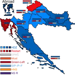 | Constituency | HDZ | Restart | DPMŠ | Most | Green-Left | SIP - P - F | HNS | NS R | |||||||||