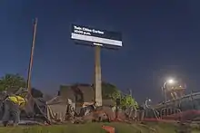 The park board issued vacate notices for those staying at the 12-tent encampment on August 10 and attempted to connect those staying there with shelters and social services over the following weeks.[56] Protesters, however, initially blocked officials from clearing the camp.[14] On September 24, the park board disbanded the camp for the five remaining people staying there and cleared the park of abandoned tents, hypodermic needles, and biohazard materials.[56] A group of demonstrators gathered outside the Hennepin County Government Center building in downtown Minneapolis the night of September 24 to protest the encampment's closure. Law enforcement authorities made five arrests of demonstrators; none of those arrested had been staying at the encampment.[62]
