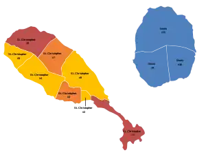 | Saint Kitts and Nevis Labour Party | 10,316 | 37.09 | 2 | –1 | |