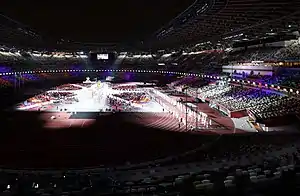 The New National Stadium served as the main stadium for the closing ceremony. Demolition of the old National Stadium was completed in May 2015, followed by the construction of the new stadium which began at the same site on 11 December 2016. The stadium was handed over to the IPC on 30 November 2019 for necessary games and ceremony preparations. Capacity during the Paralympic Games will be 60,102 taking into account press and executive seating areas.[5]
