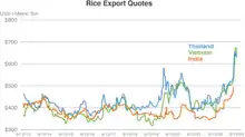 - ↑ "Rice Export Prices Highest in More Than a Decade as India Restricts Trade | USDA Foreign Agricultural Service". 19 September 2023.