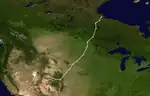 On October 10 at 03:00 UTC, an extratropical cyclone made landfall near Vancouver.[34] This cyclone's remnants became a weak, elongated frontal system over the interior West Coast by October 11 at 12:00 UTC.[35] After remaining disorganized for about 12 hours, the system began to coalesce into a stronger extratropical cyclone over Colorado on October 12.[36] It also began to drop snow over parts of the Rocky Mountains by this point. The system then merged into a well-formed extratropical cyclone with a single-low pressure center by early the next day, beginning to steadily intensify.[37] Snowfall rates began to rapidly increase in bands to the west of the center throughout the day, with up to a foot of snow falling within hours. The system reached its peak intensity of 988 mbar (29.2 inHg) at 21:00 UTC on October 13.[38][39] The extratropical cyclone then began to accelerate to the north, becoming occluded in the process.[40][5] The weakening system then moved into the Canadian Prairies, resulting in some more snow there,[41] before merging into another frontal system on October 15.[42]