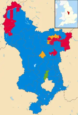 The Derbyshire County Council elections took place alongside the other 2021 local elections. All 64 seats to Derbyshire County Council were contested.[1] The Conservatives retained control of the council with an increased majority. In addition, the Green Party gained representation for the first time.[2]