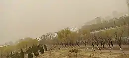 Beijing and cities in the Mongolian Plateau[5] regularly experience sandstorms in March and April, partially due to their proximity to the Gobi Desert.[6][7] The issue has been compounded since the 1950s due to widespread deforestation and soil erosion.[8][9] In particular, forests on the border with Mongolia were cut down, which previously provided protection against sand from the Gobi Desert.[9] In 1978, China started the Three-North Shelter Forest Program to counteract the effects, in particular by planting new trees on 35 million hectares of land to trap incoming dust.[10] Air corridors were also created to allow sand to pass more quickly. The country's Ministry of Ecology and Environment said these measures were reducing the impact and duration of sandstorms.[6][8] The average number of sandy days in Beijing has fallen from 26 in the 1950s to 3 in 2010.[10]
