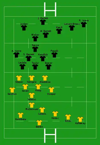 | Try: Fainga'a 49' c White 65' c Banks 78' c Con: Lolesio (1/1) 50' Hodge (2/2) 66', 79' | Report | Try: J. Barrett 16' c Havili (2) 39' m, 60' m Jordan 54' m Lienert-Brown 68' m Bridge 71' m Con: B. Barrett (1/4) 17' Pen: B. Barrett (2/2) 8', 14' |
