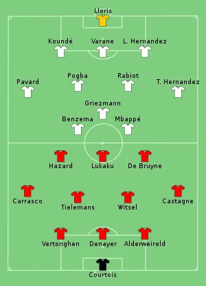 28. 1 2 3 "Tactical Line-ups – Semi-finals – Belgium v France" (PDF). UEFA.com. Union of European Football Associations. 7 October 2021. Retrieved 7 October 2021.
