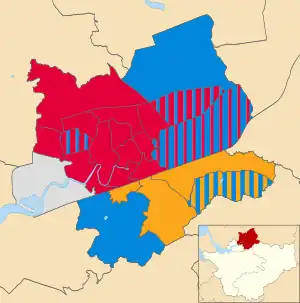 The Labour Party retained overall control of Warrington Borough Council after winning 35 of the 58 seats.