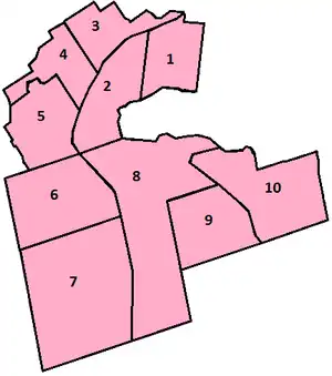 ![]() Map of Barrie's 10 wards | |||||||||||||||||||||||||||||||