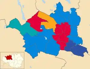 Since its formation, Bolton Council has variously been under Labour control, Conservative control and no overall control. Labour most recently regained its majority in the 2011 council election, which it held until the 2019 election. After the 2019 election, Labour held 23 seats with the Conservatives on 20, the Liberal Democrats on 6, the local party Farnworth and Kearsley First on five, the UK Independence Party on three and the local party Horwich and Blackrod First on two, as well as one independent councillor. The Conservatives formed a confidence and supply agreement with the Liberal Democrats, Farnworth and Kearley First, Horwich and Blackrod First and the UK Independence Party so that they could form a minority administration.[3][4] In the most recent election in 2021, the Conservatives became the largest party with 20 seats to Labour's nineteen, with seven independents, the Liberal Democrats and Farnworth and Kearsley First on five seats each, Horwich and Blackrod First on five and a single UK Independence Party councillor remaining. The Conservatives continued to run a minority administration with support from smaller parties.[5] The Liberal Democrats ended their working arrangement with the Conservatives in January 2021.[6] Marie Brady, the leader of the Horwich and Blackrod First party, defected to the Conservative Party after the two other councillors from her party voted against the Conservative budget.[7]