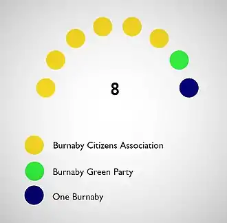 | Burnaby Citizens Association | Alison Gu (X) | 17,340 | 8.08 | |