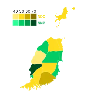 | National Democratic Congress | 31,430 | 51.84 | 9 | +9 | |