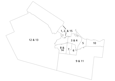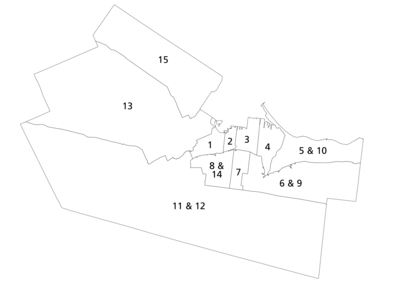 On 28 February 2022, HWDSB trustees were provided a report by school board staff outlining issues with the board's current ward parings. Provincial legislation affords the HWDSB 11 trustees, requiring the board to combine some municipal wards to create a single trustee ward. For the 2018-2022 term, Wards 1 & 2 (West Lower City), Wards 9 & 10 (Stoney Creek), Wards 8 & 14 (West Mountain), and Wards 11 & 12 (Ancaster-Glanbrook) were combined. Population growth in Wards 1 & 2 necessitates the wards being offered their own trustees, requiring new ward parings. The trustees rejected a request by staff to select a new pairing, opting instead to offer members of the public a chance to comment on new proposed pairings.[29] On 28 March 2022, trustees approved new ward parings, dividing Wards 1 & 2 and creating new pairings out of Wards 5 & 10 and 6 & 9.[30]