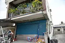 The Kaohsiung Metro system was temporarily suspended due to the shaking, and objects fell from shelves in Taitung City, where an old house collapsed.[29][1] In Luye, part of the Baohua Bridge had been severely damaged.[30] A shopping mall in Kaohsiung City suffered cracks in floors and ceilings.[31] In Fuli, the wall of a house collapsed.[32] The Wan'an Brick Factory, a historical monument in Chishang, collapsed.[33] Eight people suffered minor injuries,[34][35] and a man in Minxiong had to be treated for injuries after suffering a heart attack during the earthquake.[36]