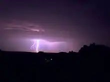 On 19 July, steep lapse rates in the mid troposphere associated with the plume of hot air led to the development of a line of elevated dry thunderstorms that initiated along a cold front, affecting mostly southern England, progressing eastwards throughout the day and overnight. These storms produced very little precipitation, with accumulations of just 1-2mm in places.[52] This, combined with frequent cloud-to-ground lightning and tinder dry vegetation, created additional fire hazards. Several thousand lightning strikes were detected,[53] causing at least one residential fire.[54]