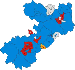 The council had been under no overall control prior to the election, being run by a Labour minority administration with support from independent councillors. The council remained under no overall control after the election. The Conservatives formed the largest single party, but an agreement was reached between Labour and most of the independent councillors to continue running the council.[1]