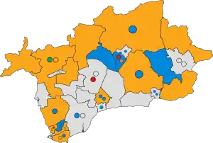 Last election 19 seats, 23.6% 8 seats, 15.3% 20 seats, 36.2%