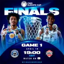 The 2023 FIBA Europe Cup Finals were the concluding games of the 2022–23 FIBA Europe Cup season. The Finals were played in a two-legged format, with the first leg being played on April 19 and the second one on 26 April 2023.[2][3] The finals were played between Cholet and Anwil Włocławek.[4][5] Both teams were appear in their first FIBA Europe Cup final.[6]
