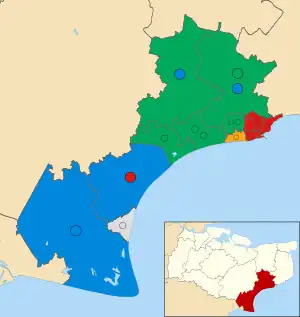 The Green Party won the most seats, with the Conservatives falling into third place behind Labour. The leader of the council prior to the election, Conservative councillor David Monk, lost his seat.[2][3]