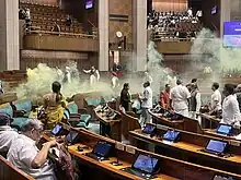 - ↑ "In Parliament Security Breach, Colour Gas Canisters Used: What Are They?". NDTV.com. Retrieved 13 December 2023.