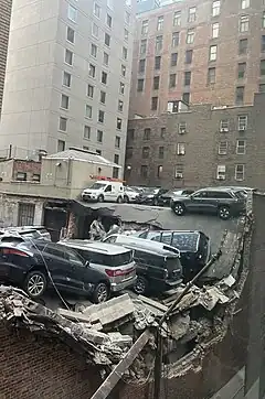 - ↑ Shaffrey, Ted; Calvan, Bobby Caina; Peltz, Jennifer (April 18, 2023). "'Like an earthquake': Parking garage falls in NYC, killing 1". AP NEWS. Archived from the original on April 18, 2023. Retrieved April 18, 2023.