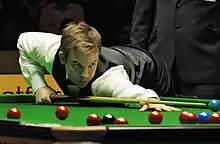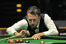 Speaking after the match, O'Sullivan commented that Carter had played poorly in the second session, but said that Carter would have had to "scrape me off the table" to win.[82] Carter however said he was "gutted", but spoke positively about reaching the final for a second time.[82] Having lost his third major final to O'Sullivan, Carter quoted Jimmy White, who said "he's beginning to annoy me" after losing his fourth World Championship final to Stephen Hendry in 1994.[83][84][85] O'Sullivan announced that would take two months away from the sport and miss some tournaments: "Too much intense snooker for me is not good. I now need to back off and consolidate, and get some fun in the game."[86]