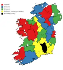 Map showing the leagues in which each county will participate.