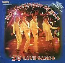 20 Disco Greats / 20 Love Songs is a double album released by British pop group Brotherhood of Man which was released as two separate albums, but sold together as a 'buy one get one free' package, as was the popular trend at the time.