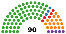 Makeup of the National Council of Provinces in the 22nd Parliament; a darker shade represents a permanent delegate while a lighter shade represents a special delegate