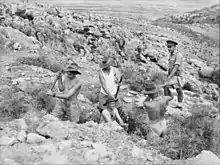 After this the brigade took part in the Syria–Lebanon campaign in June–July 1941, fighting against the Vichy French.[6] During this campaign, the brigade was allocated to the centre of the Allied advance, with the 21st Brigade advancing on its flank along the coast. The campaign was short, but hard fought and the brigade's major actions during this time included an attack on Merdjayoun and fighting around Jezzine.[7][8][9] After the armistice was signed in July, the 25th Brigade moved to Beirut where they undertook garrison duties. A further move took place in September, when the brigade was transferred to Tripoli to construct defensive positions. They remained there until January 1942, when the 25th Brigade was withdrawn to Julius, in Palestine.[10]