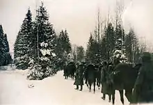 The 269th Infantry Division was a major fighting formation of the German Army (Wehrmacht). It was created in August 1939, and first saw combat in the Battle of France, and was then posted to occupation duties in Denmark. In the summer of 1941 the division advanced towards Leningrad in operation Barbarossa as part of Army Group North. Following the final drive on the city and the subsequent siege, the division spent the winter and the next summer in defensive action along the Volkov river front, combating repeated Soviet attempts to restore land communications to Leningrad.[1]