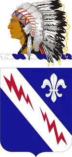 • Crest: That for the regiments and separate battalions of the Oklahoma Army National Guard: From a wreath Argent and Azure an Indian's head with war bonnet all Proper.