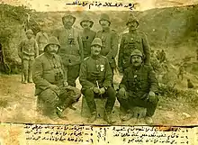 At the start of World War I the regiment was assigned to the 9th Division.[1] In September 1914 the 27th Regiment and the 9th Division relocated to the Gallipoli Peninsula.[2] Following the appointment of Lieutenant Colonel Irfan to command the Menderes Detachment on 10 November 1914 Kolağası (Major) Mehmed Şefik was appointed to replace him as commander of the 27th Regiment of the 9th division.[3][4] On 29 November 1914 Şefik was promoted to the rank of Binbaşı (Lieutenant Colonel).[3]