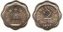 The Indian Two naye paise (Hindi: दो नए पैसे) (singular: Paisa) is a unit of currency equaling 2100 of the Indian rupee. The symbol for paisa is p.